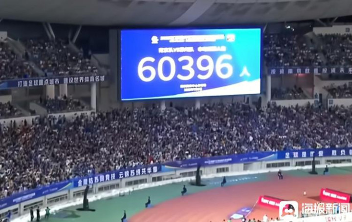 7月5日,南京奥体中心体育场举行“苏超”第六轮南京队对阵苏州队的比赛,观赛人数达到60396人。